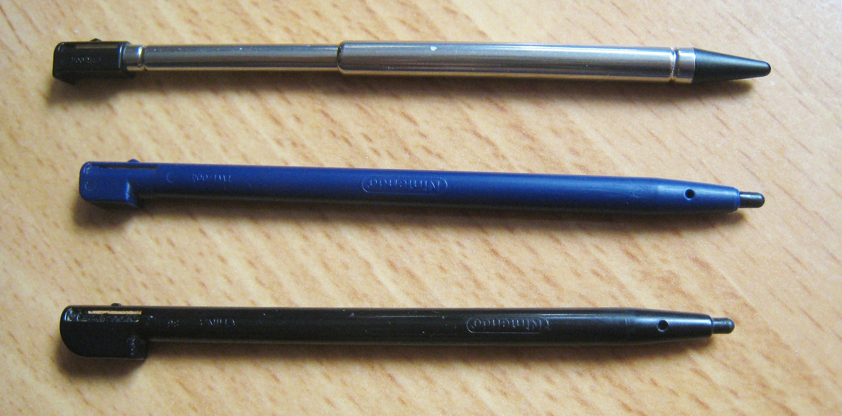 Nombreux sont ceux ayant déja une ancienne DS, afin que vous puissiez vous rendre compte des proportions voila quelques photos regroupant quelques membres de la famille! (désolé, n’ayant pas de DS Fat ou Xl sous la main, je n’ai pas pu faire la photo de famille complète!) Comme vous pouvez le voir, les dimensions sont très proches, la DSi se retrouve même à être légèrement plus large que la 3DS. La 3Ds est la première DS à proposer deux écrans de tailles différentes. Le stylet une fois déplié fait sensiblement la même taille.