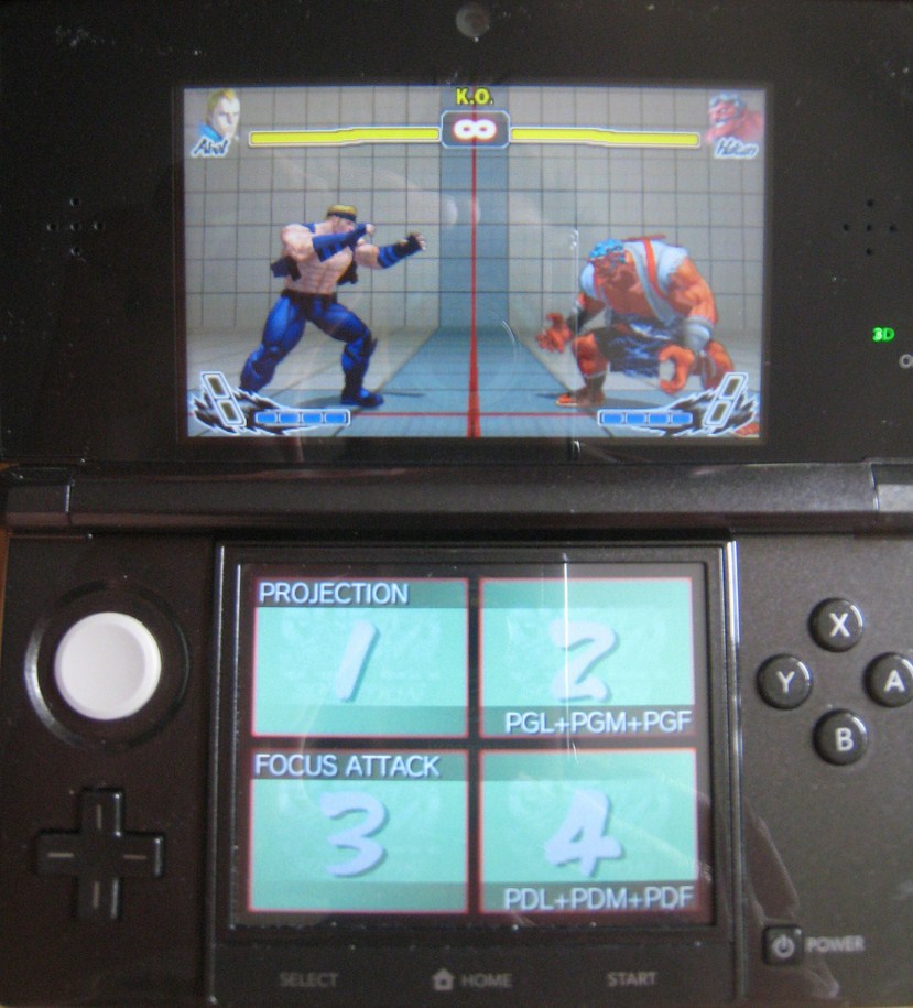 Concernant SSFIV, le jeu est un portage sur la 3DS du jeu original déja sorti sur Xbox 360 et PS3. Le portage et de qualité, le jeu semble quasi identique, tous les personnages y sont, il y a même les costumes alternatifs qui sont payants sur les consoles de salon! Capcom signe ici une très belle adaptation, et jouer sur une portable est un plaisir. Mais en réalité, ce n’est pas vraiment une nouveauté. Nous avons de nouveau que l’aspect portable. Car la 3D n’apporte rien sur ce jeu… Il y a bien un mode 3D ou la caméra se situe sous un angle différent, mais le jeu perds en précision, il est plus difficile d’apprécier les distances, la jouabilité est moins bonne, et on en revient vite au mode classique. L’autre défaut de la 3D est la différence de qualité graphique, le jeu semble moins fin, perso, je ressens un léger scintillement en mode 3D, et ce quelque soit l’intensité. C’est dommage, car l’écran de la 3DS est magnifique, le rendu des couleurs est propre et éclatant, mais force est de constater que l’expérience 3D est plutôt éphèmére.